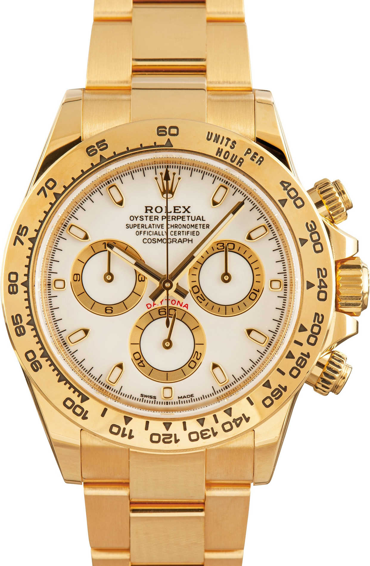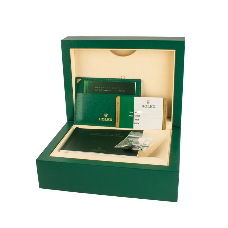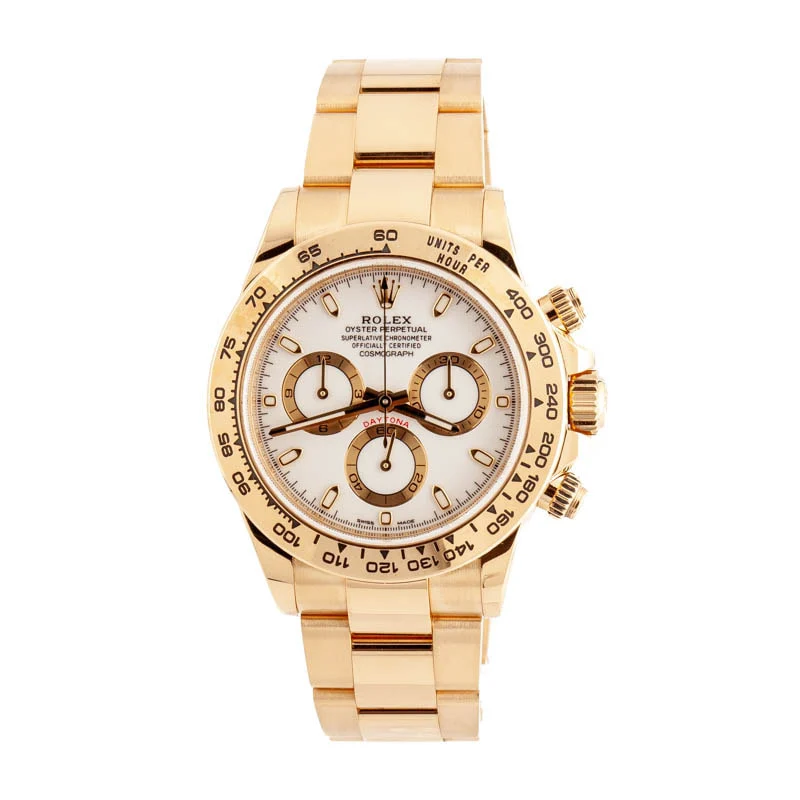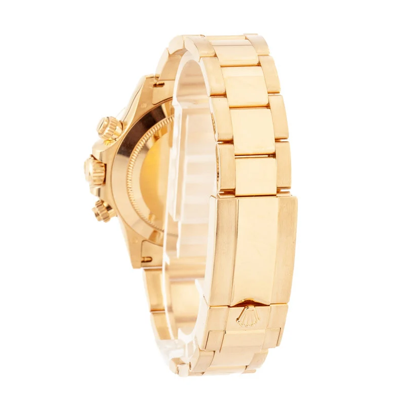 Pre-owned Rolex Daytona ref 116508 (2018) is in a class of its own with a nearly flawless 18k yellow gold finish and impressive cal. 4130 movement. The watch earns its name from the famed speedway, where such legends as Hurley Waywood, Peter Gregg, and Bob Wollek have raced around the track. Besides boasting the exclusivity that often comes from owning a Rolex wristwatch, it also offers everything the wearer needs to keep precise time while on the track or spectating from the crowd. The calibre 4130 Perpetual movement operates as a chronograph, allowing the wearer to calculate distance and speed via the coordinating Tachymeter bezel and registers on the dial. These features give the collection its signature look that is sure to turn heads everywhere you roam.